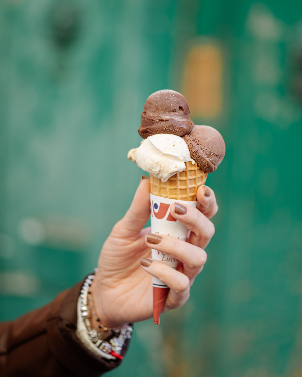 Il nostro gelato è fatto con ingredienti selezionati come latte e uova di alta qualità, cacao e cioccolato con la giusta gradazione e vaniglia importata direttamente dai tropici. Il tutto è miscelato secondo le ricette tramandate dal nostro fondatore Guerrino Arnoldo, per offrirvi sensazioni uniche anche nei più semplici abbinamenti. La frutta matura, ricca di sapori e profumi, viene lavorata con cura per mantenere intatte tutte le sue qualità. Non utilizziamo latte o grassi aggiunti per garantire la massima bontà e salubrità del nostro prodotto. La ricerca della materia prima avviene quotidianamente nei mercati di Lucca e Lido di Camaiore, in modo da trovare sempre la giusta maturazione. Durante i mesi estivi, seguendo i cicli della natura, offriamo fino a dodici gusti di frutta fresca tra cui i mirtilli della Garfagnana, le fragoline di bosco dell'Alta Val di Vara e i lamponi della Versilia.